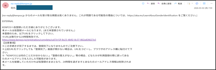 (参考)登録メール宛に来る内容